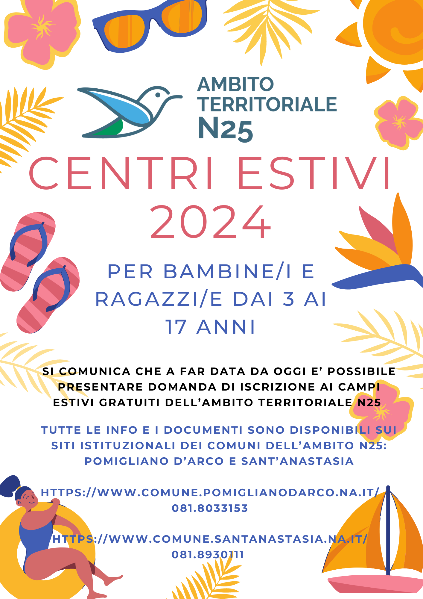 Si comunica che a far data da oggi sarà possibile presentare domanda di iscrizione ai campi estivi per per bambine/i e i ragazzi/e dai 3 ai 17 anni presso le strutture educative individuate dall’Ambito N25