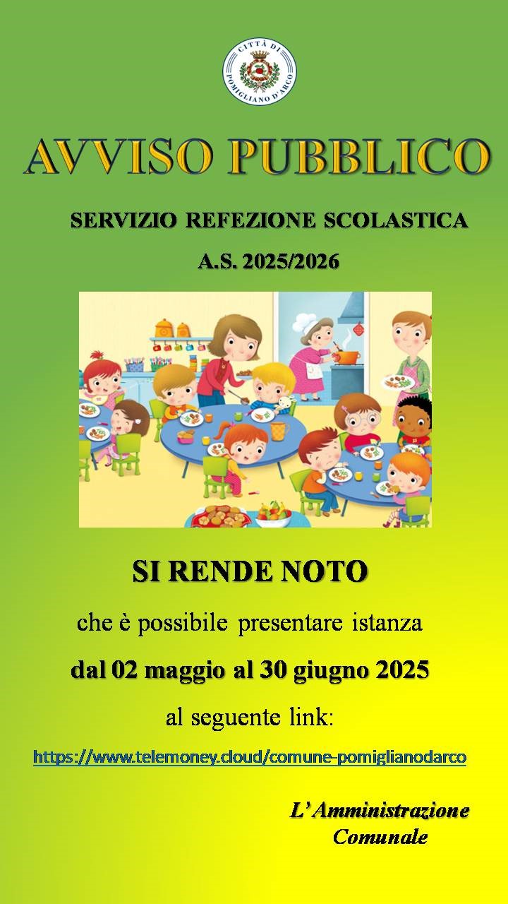 che sono aperti i termini per l’accesso al servizio di refezione scolastica per l’aa.ss. 2025/2026.